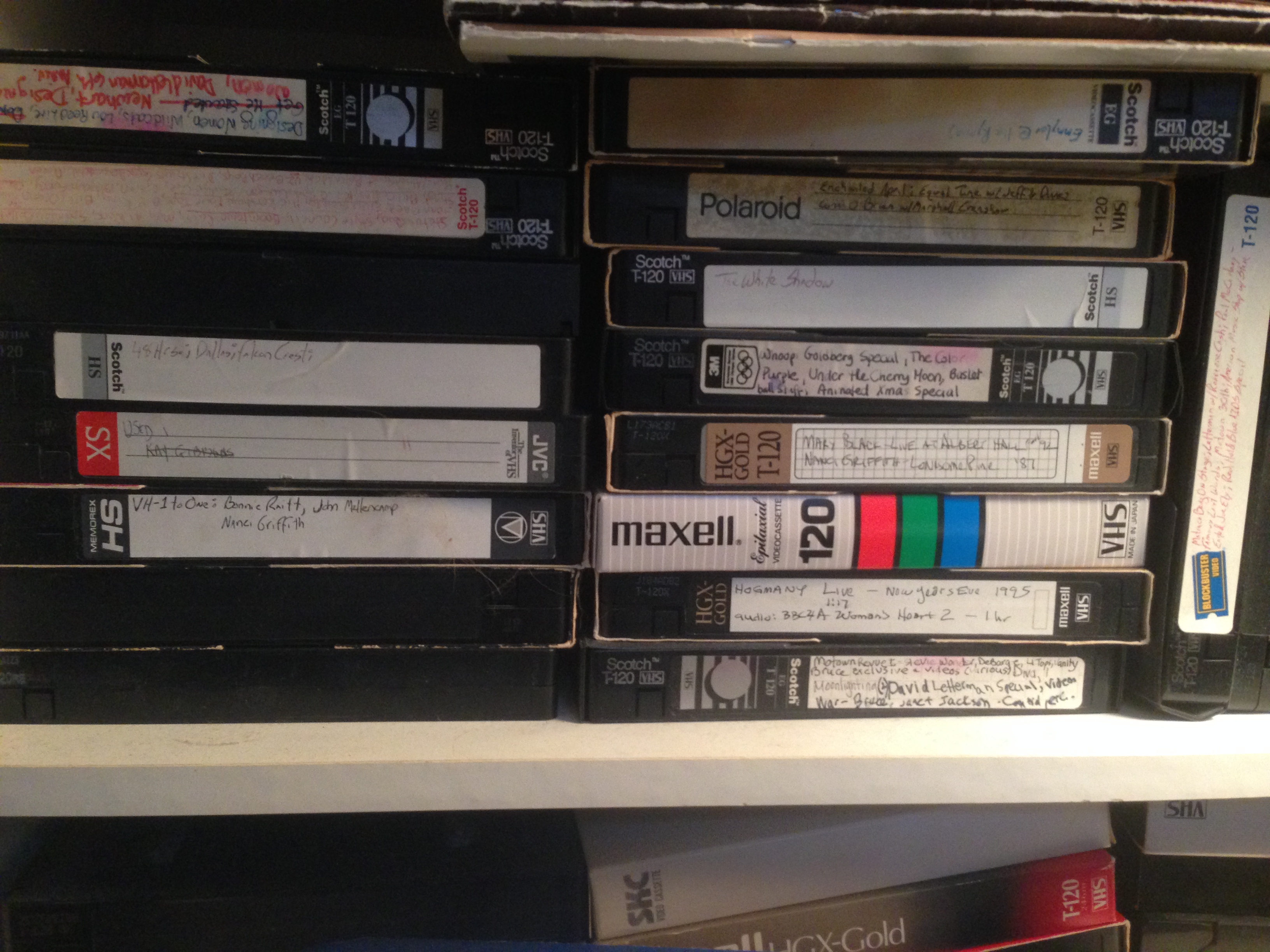 Of late, I’ve been reminded of the work, and space, once required of TV fans. For the past two weeks I’ve been sorting through hundreds of VHS tapes, some of which date to the early 1980s, transferring bits here and there to my computer and tossing the rest. The tapes took up more than shelf space: an entire corner of our bedroom was devoted to them (notice the past tense there!). My closet holds even more. In any event, it’s a time-consuming project made possible by a simple gadget that connects the VCR to my computer; recording is in real time. The goal isn’t to save episodes of Wonder Years, Homicide or any of the many programs or movies we taped, however, as most of those are available elsewhere, but appearances of our favorite musical acts on Late Night With David Letterman, The Tonight Show, Arsenio Hall, TNN, VH1 and MTV, among other shows and channels.