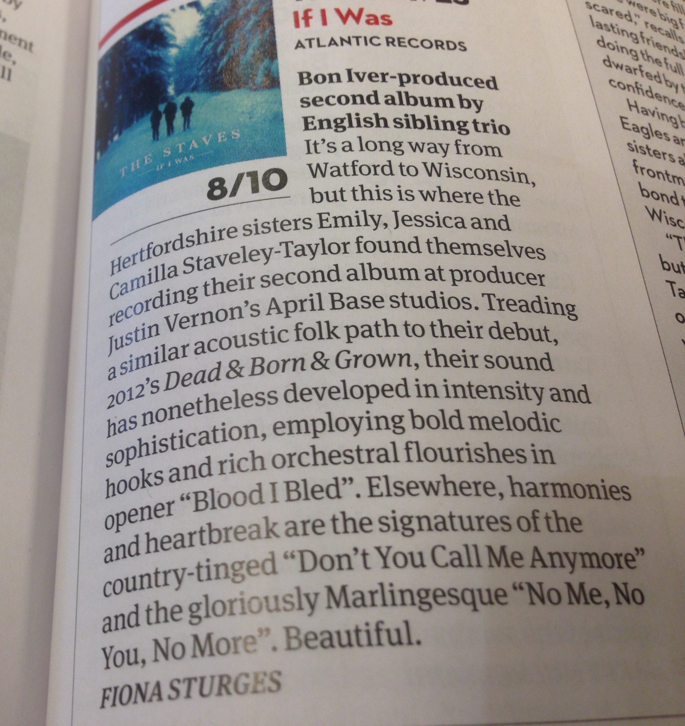 The Staves are three sisters from Britain who sound like they stepped out of the late ’60s or early ’70s. I discovered them, as I often do new (and new-to-me) acts, via a review in my favorite music magazine, Mojo. It’s a Brit magazine available in Barnes & Noble bookstores in the U.S. – usually delayed by a month. I skim the reviews, look for anything that may appeal to my sensibilities. In the case of If I Was, the phrases “acoustic folk,” “bold melodic flourishes” and “harmonies and heartbreak” leapt off the page.