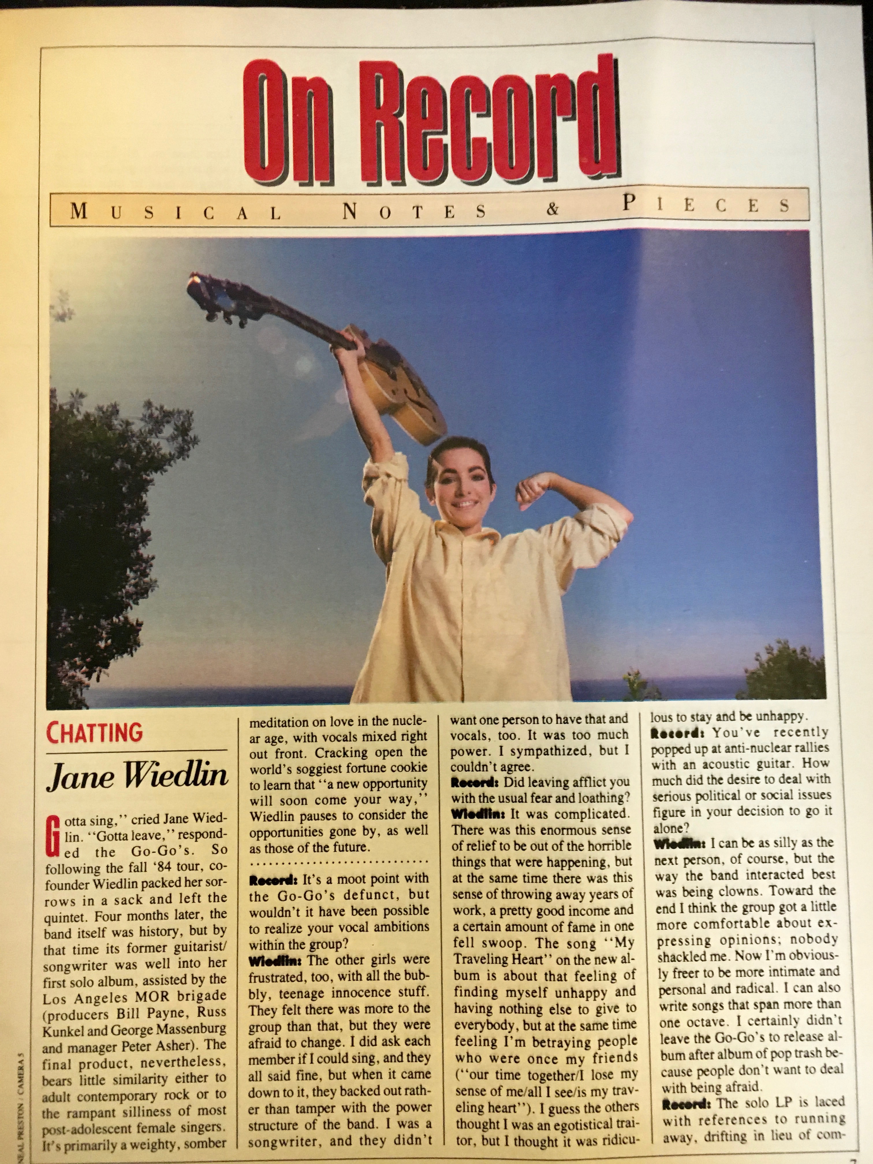 Anyway, this issue of Record features Bryan Adams on the cover; I didn’t care for his music then, and still don’t care for it now. What excited me the most: a Q&A with Jane Wiedlin, who talks about leaving the Go-Go’s and recording/releasing her solo debut, which came out in October.