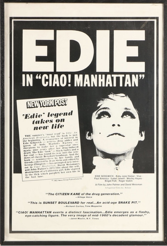 Ciao! Manhattan, of course, is a somewhat arty film, which meant I took the train into Philly and walked from Reading Terminal to South Street, where it was playing at the TLA. The late Edie Sedgwick, who starred in it, had fascinated me since I’d read Jean Stein’s Edie: An American Biography earlier in the year. (The New York Times’ review of that book is here.) This may blow some people’s minds, but it was my fascination with Edie that led me to check out the Velvet Underground and, shortly thereafter, Lou Reed, as they were all part of Warhol’s Factory scene during the mid-‘60s.