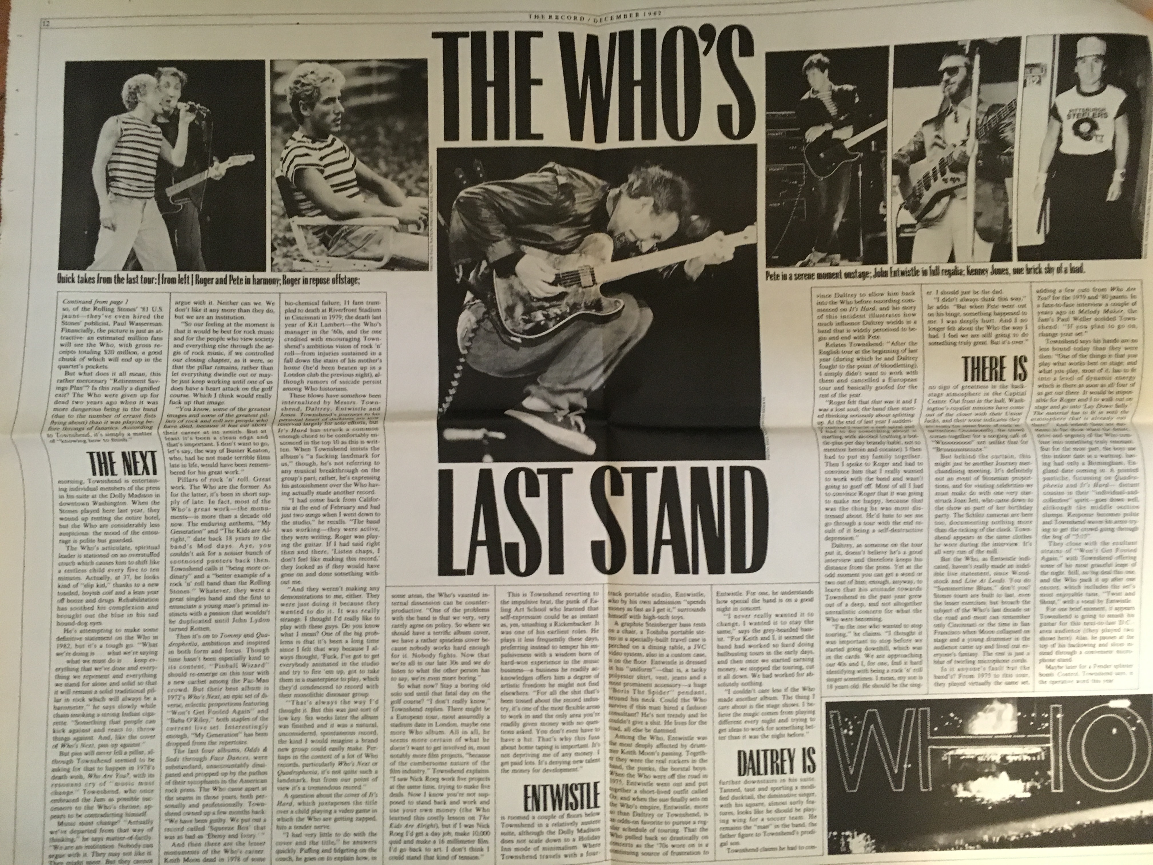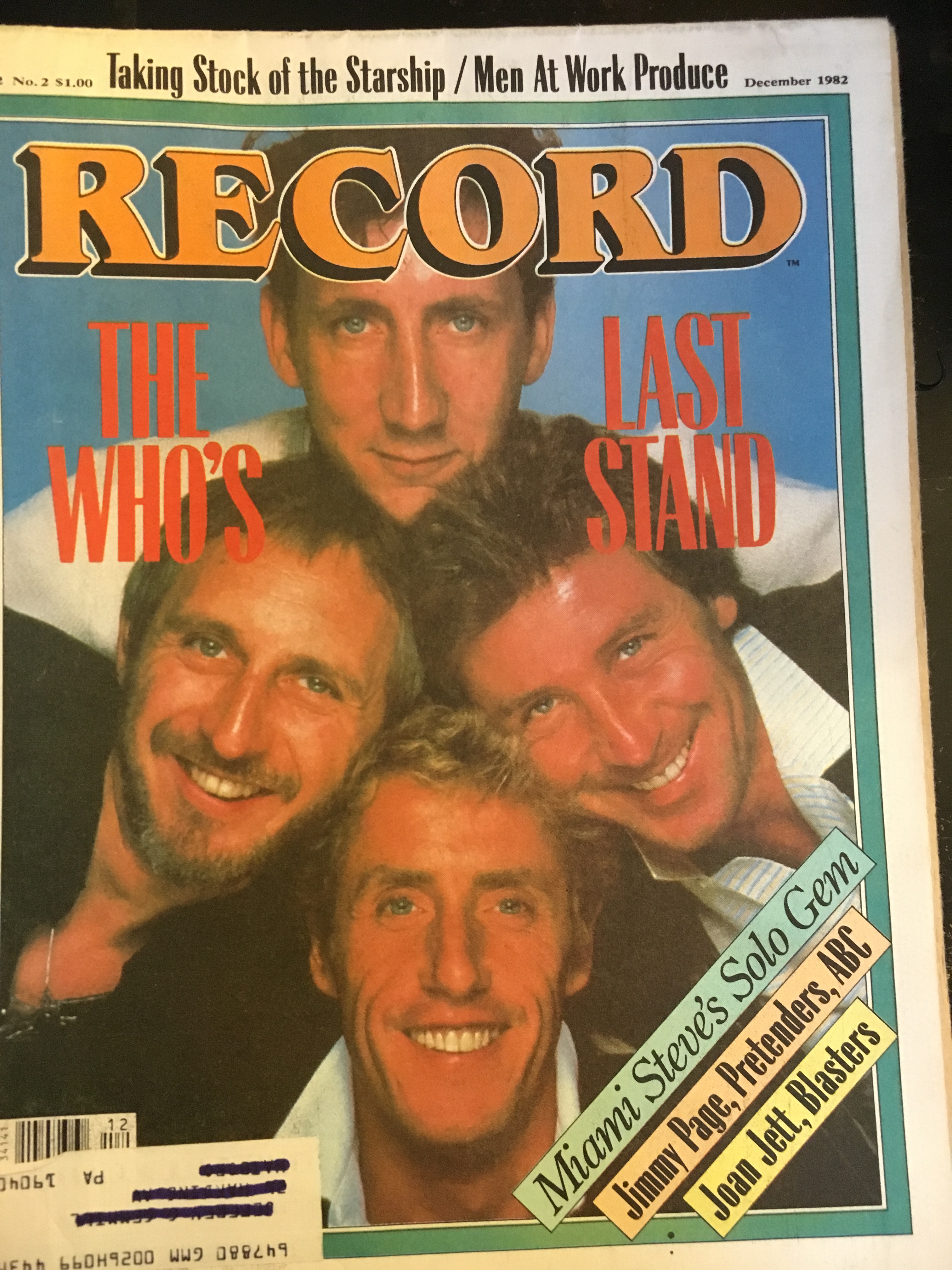 Anyway, to the matter at hand: the Who grace the cover of this particular issue; they’d released It’s Hard in September and were in the midst of what they said was their final tour. Also mentioned on the cover: Jefferson Starship, Men at Work, Miami Steve, Jimmy Page, the Pretenders, ABC, Joan Jett and the Blasters.