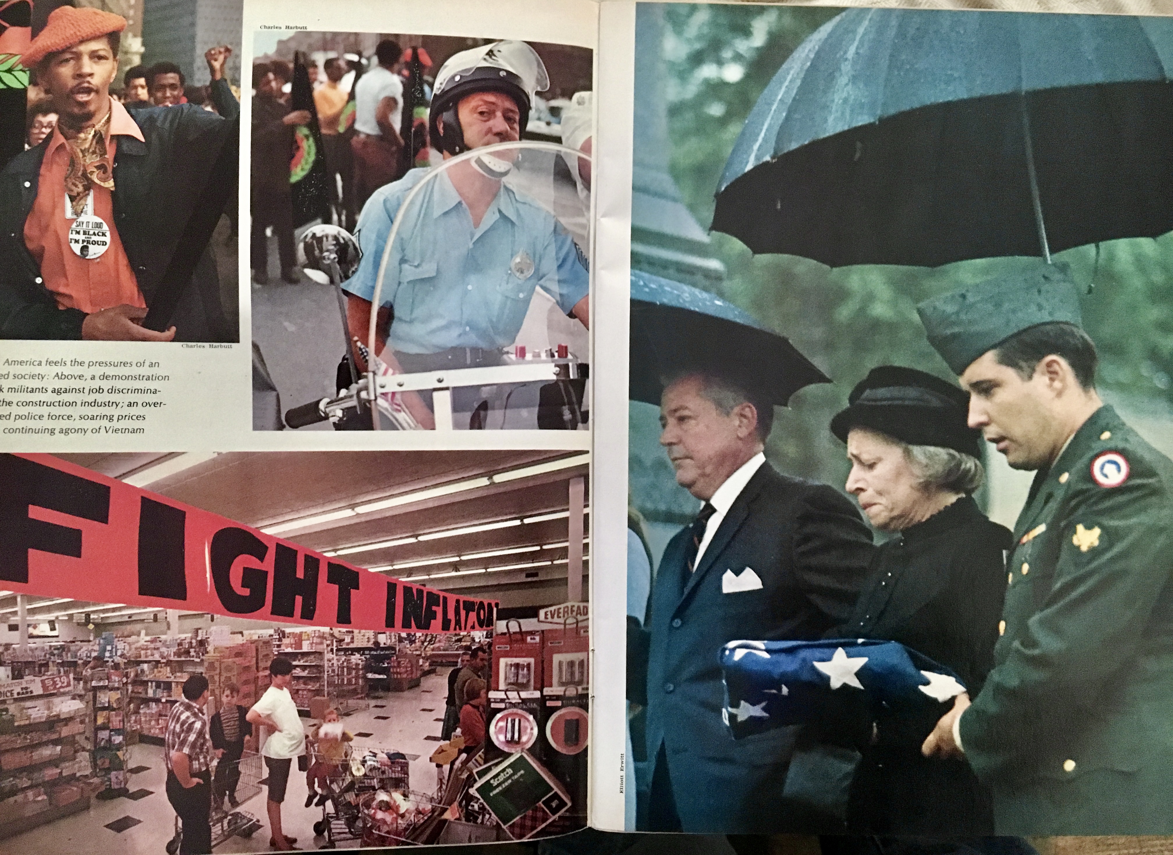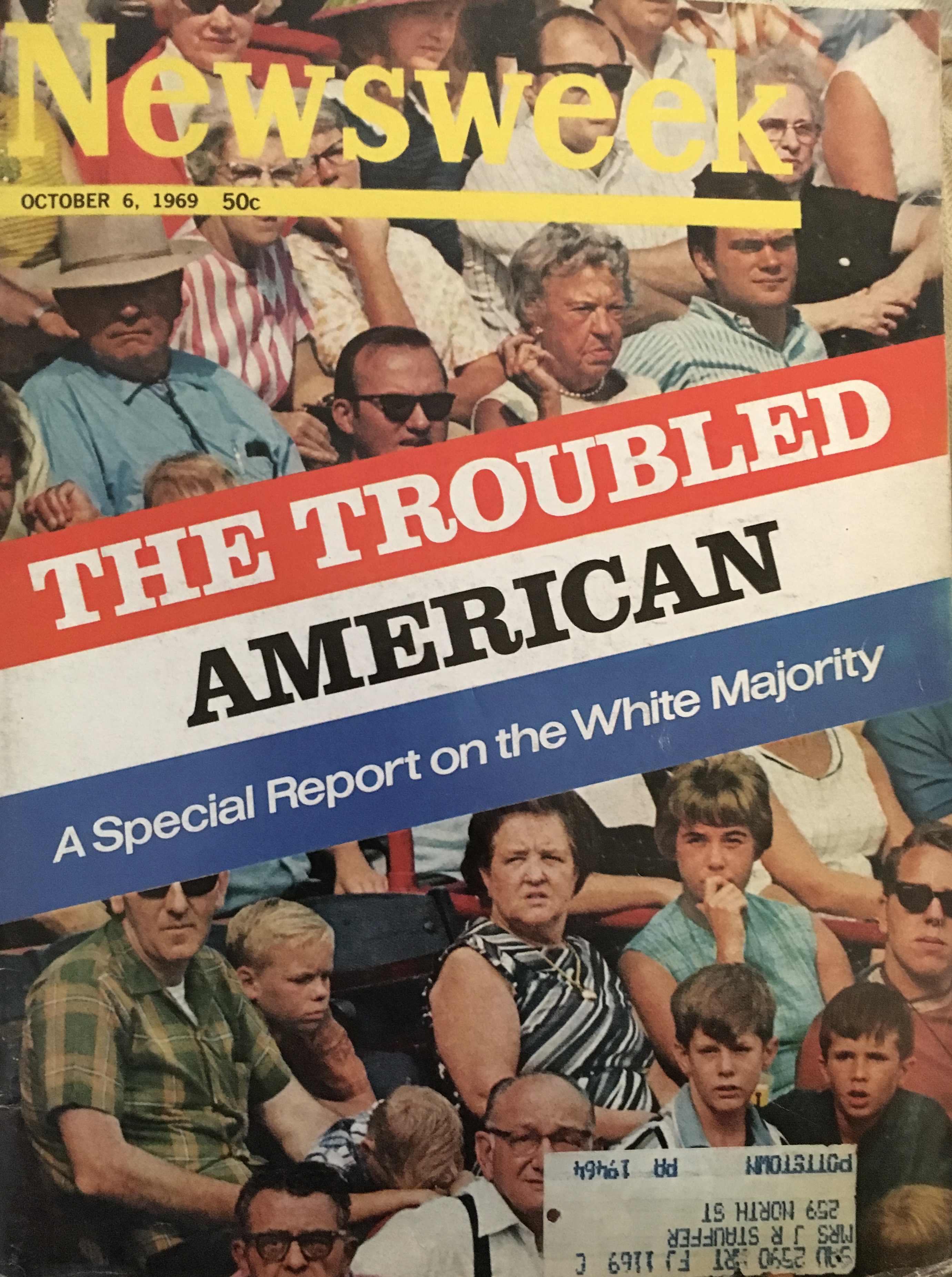According to Newsweek, America’s white majority was a troubled lot as the world’s clock prepared to flip from 1969 to 1970: “Fewer than one in three of the working-class group say they are better off now than five years ago; by contrast, 44 percent of the white-collar workers polled feel more prosperous. And the blue-collar group is even less confident about the future. Only 28 percent expect to be better off five years from now.”