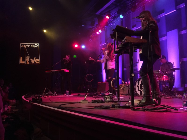 The pre-show music was a blast, and included the Beatles, Waterboys and, as the sisters and drummer Dave Power filed onto the stage, Don Henley’s “The Boys of Summer.” Everyone in the audience sang along to that classic track – a foreshadow of a surreal moment yet to come.