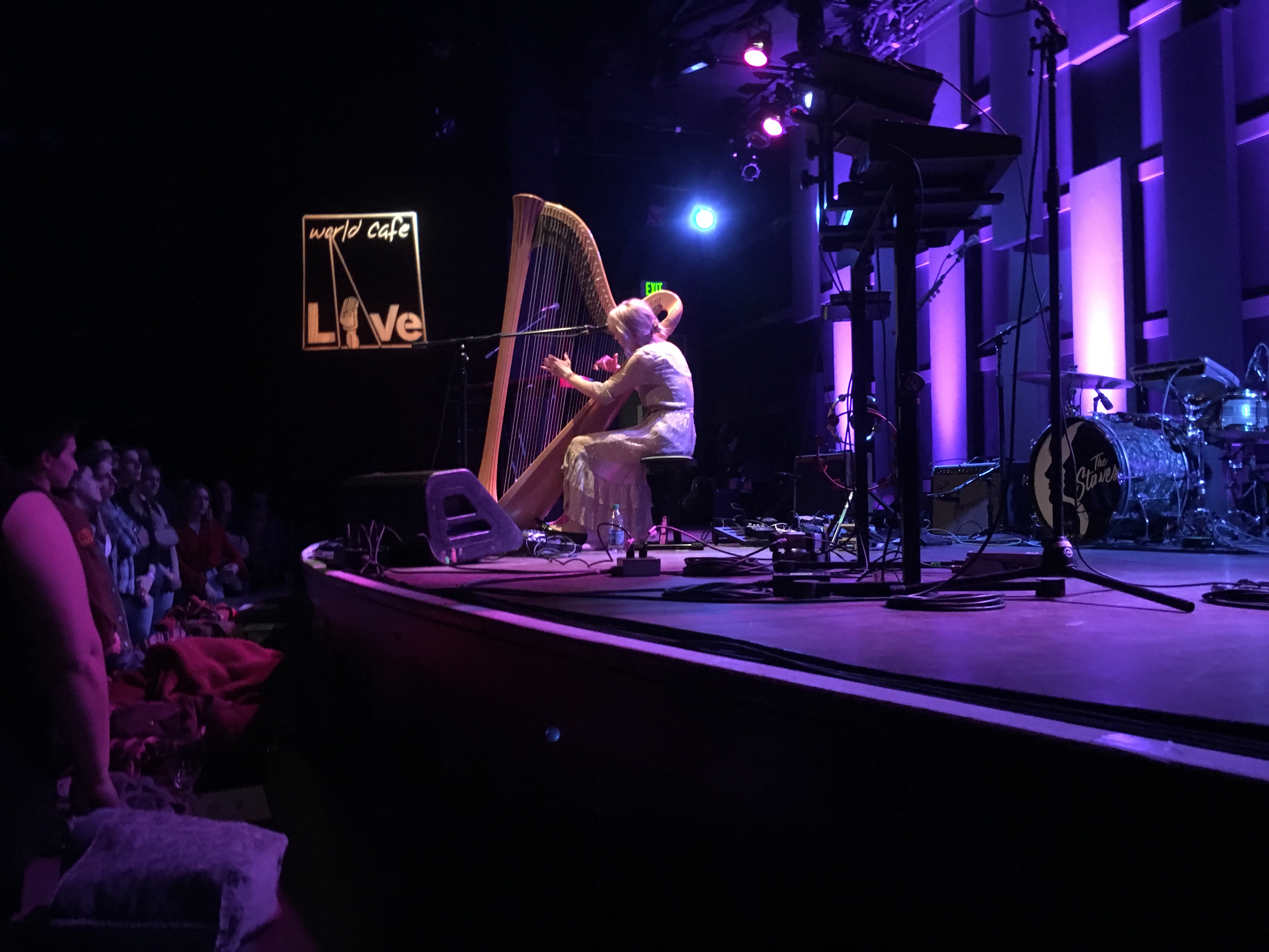 I’d be remiss if I didn’t mention the opening act Mikaela Davis, who’s a harp-playing wonder with a luscious voice. When I first saw the harp on stage, I braced for a set of elevator music. Far from it. She was, in a word, hypnotic. Here she is from last week in Dallas: