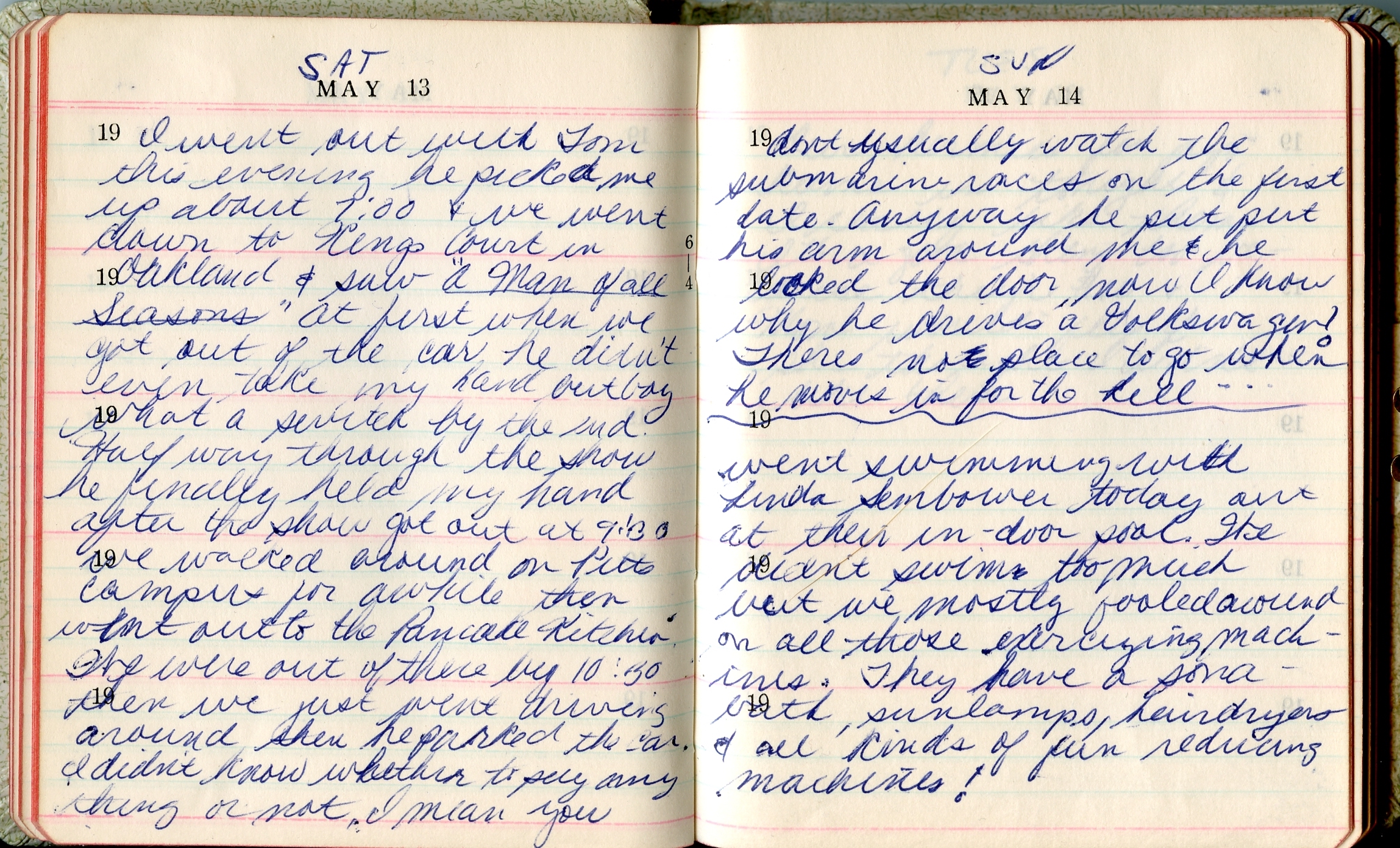 Fifty years ago today, the Summer of Love was in the offing for 16-year-old Wendy D. of Allegheny County, Pa., the home of Pittsburgh, three smaller cities and a bevy of boroughs and townships – but also a summer of love troubles, as often happens in teen romances. I’m sure she was vaguely aware of the former when she wrote the entry, but as for the latter? She wasn’t clairvoyant. (If she was, my hunch is she wouldn’t have continued to see Tom, who was but one of several suitors. Let’s just say things don’t work out so well between them and leave it at that…for now.)