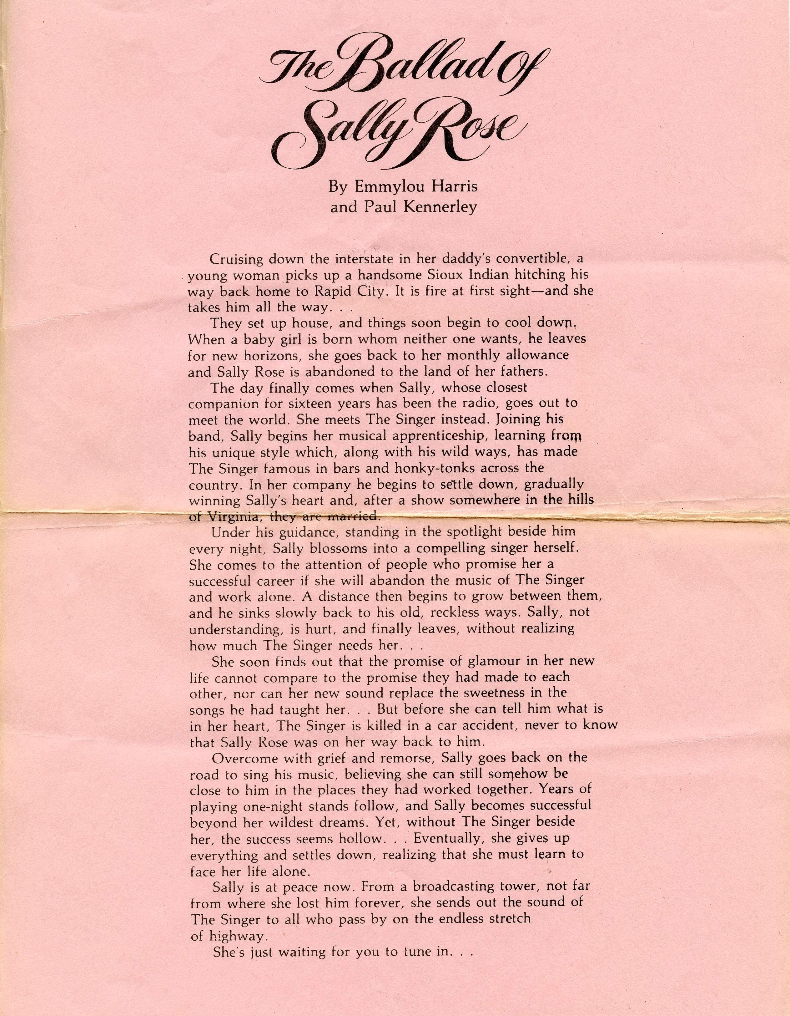 A concept album inspired by her relationship with Gram Parsons, the songs – written by Emmy and her husband at the time, Paul Kennerly – chart the story of a young woman who falls for a charismatic singer only to be wooed away from him by the promise of stardom. And just when she realizes her mistake and sets out to rejoin him…he dies in a car crash. Bad news, huh?
