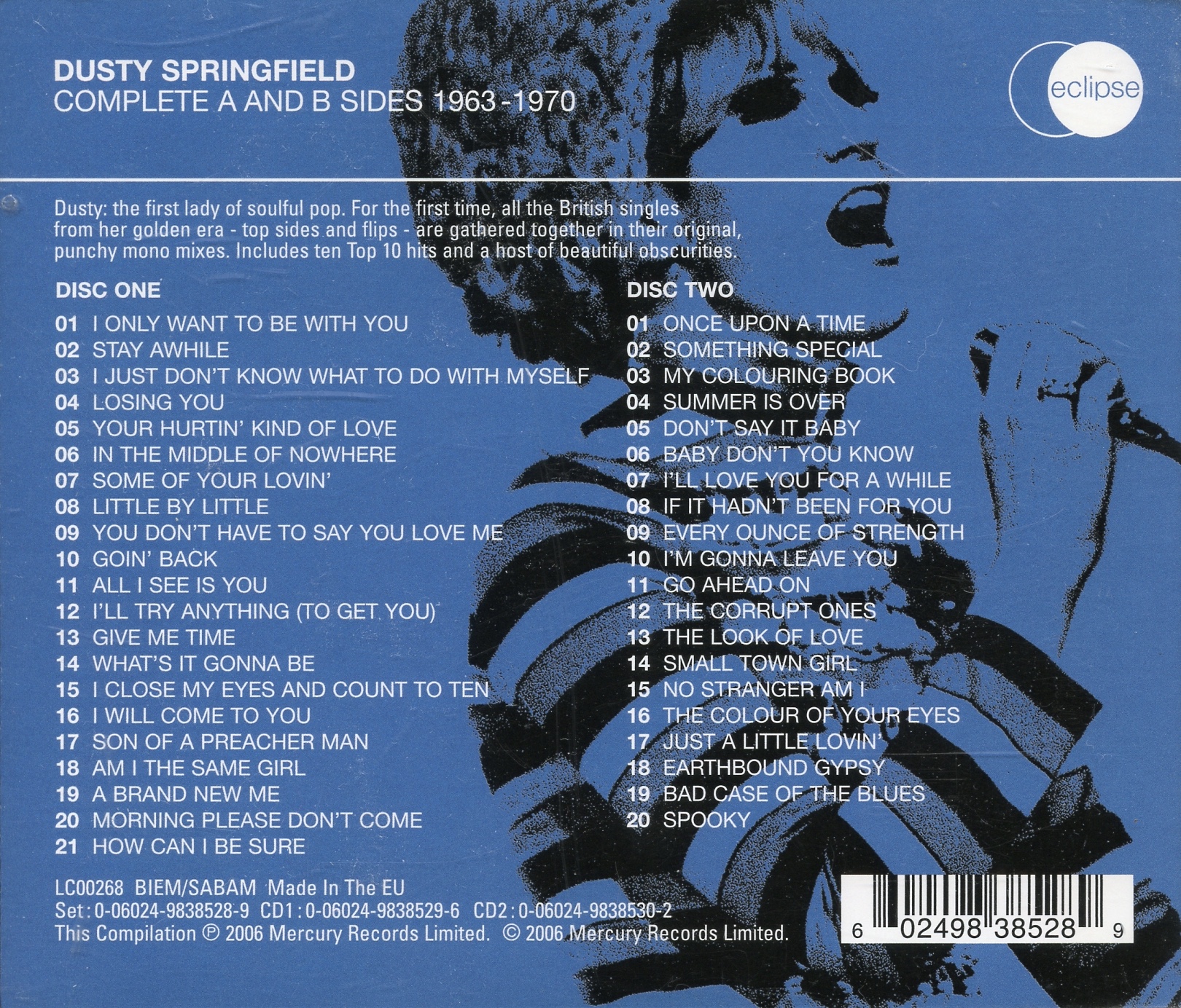 The Complete A and B Sides, which was released in 2006, takes a different tack. Compiled by Saint Etienne’s Bob Stanley, it features Dusty’s original British singles on Disc 1 and the original B-sides on Disc 2 – and most feature the original mono mixes.