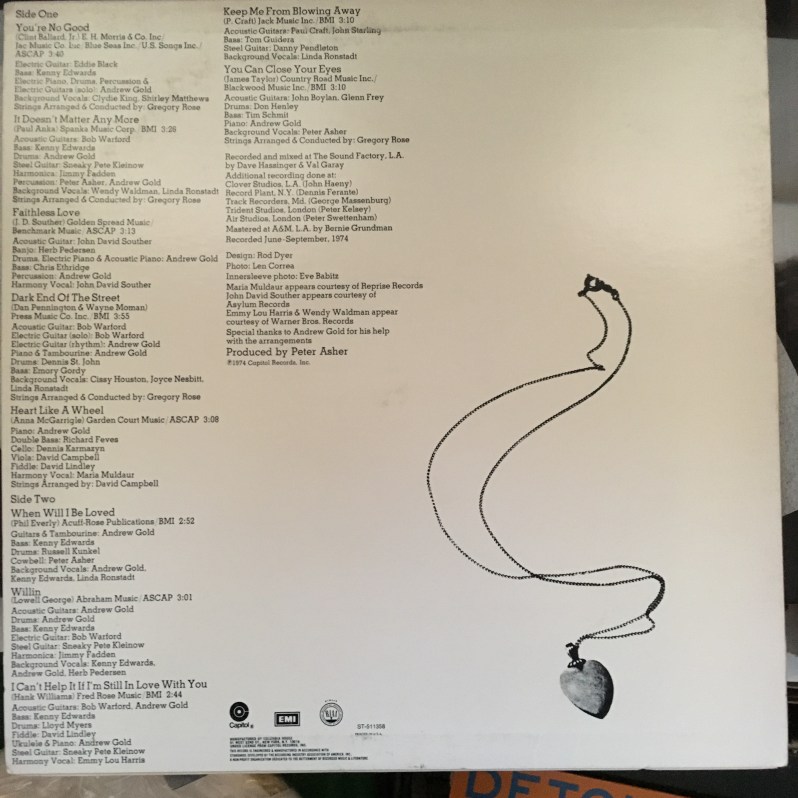 And thus began a streak of LPs that helped define the 1970s, including such gems as Prisoner in Disguise, Hasten Down the Wind, Simple Dreams and Living in the USA. They all followed the pattern Asher and Ronstadt implemented so well on Heart – well-chosen oldies alongside songs from up-and-coming singer-songwriters. Each of those albums is worth picking up. But none sparkle as much as this gem.