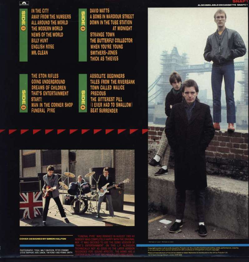 ack days in November 1983, I bought two double-LP compilations by two paradigm-shifting British bands: the Who’s The Kids Are Alright and the Jam’s Snap! I thoroughly enjoyed both right from the start. The Who’s set is, obviously, the odds-and-sods soundtrack to the 1979 documentary film about Messrs Townshend, Daltrey, Entwistle & Moon. The comprehensive Jam collection, which was released the previous month, contains 29 of the then-recently disbanded group’s songs, including their 16 U.K. singles, b-sides and the “That’s Entertainment” demo.