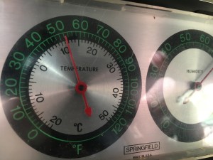 This morning, cell reception was back though the electricity wasn’t – but it wasn’t a super-cold night, so in that sense we were blessed. The downstairs was 52 degrees (Fahrenheit), as the picture shows; it could have been much, much worse.