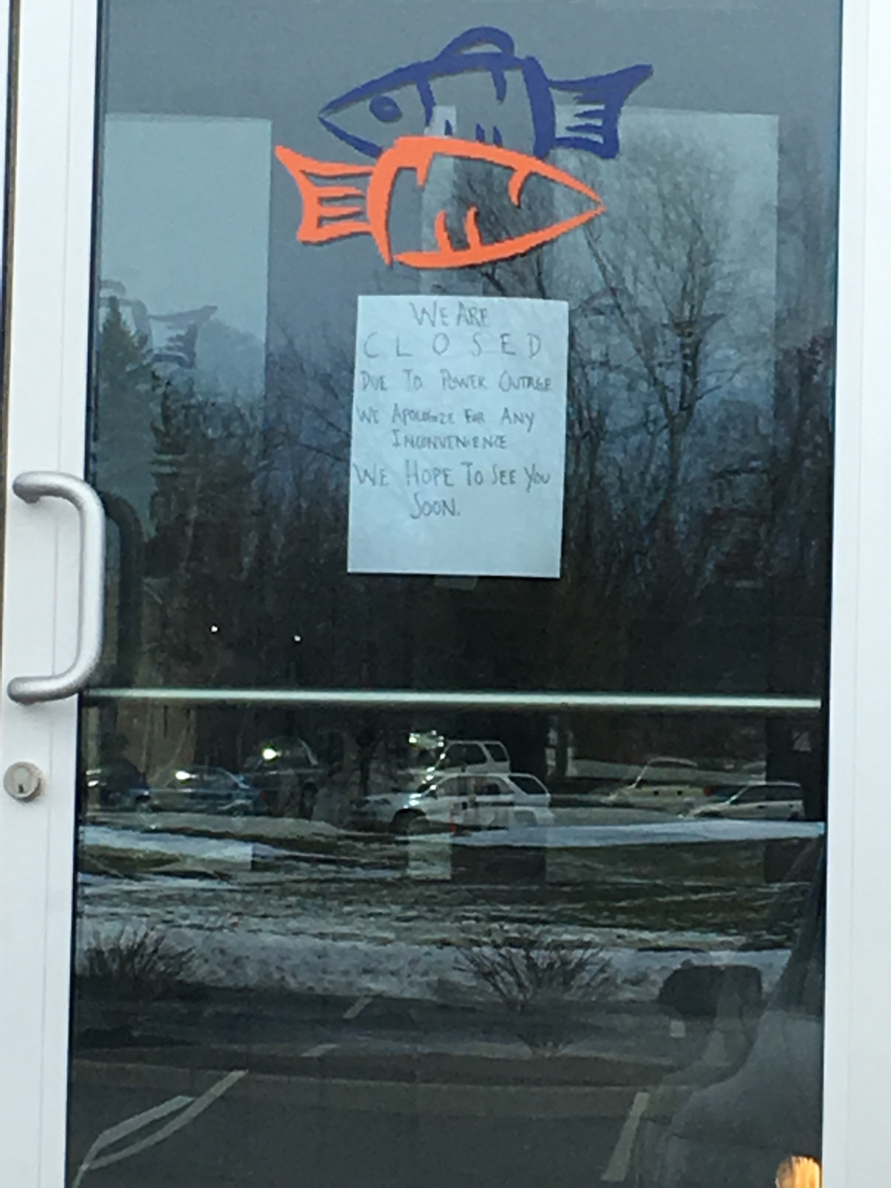 We headed out to celebrate at our favorite restaurant – only to discover that it was closed due to a power outage of its own. In the immortal word of the eminent philosopher Homer, “D’oh!”