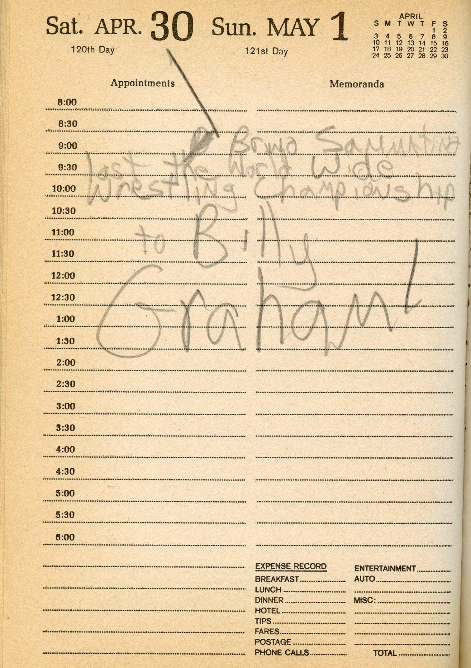 April 30, 1977: Even at my young age – a mere 11 years and 10 months – I knew enough to note the momentous event of the date in my rarely used desk diary: legendary Bruno Sammartino lost the WWWF championship to the colorful and flamboyant Superstar Billy Graham!