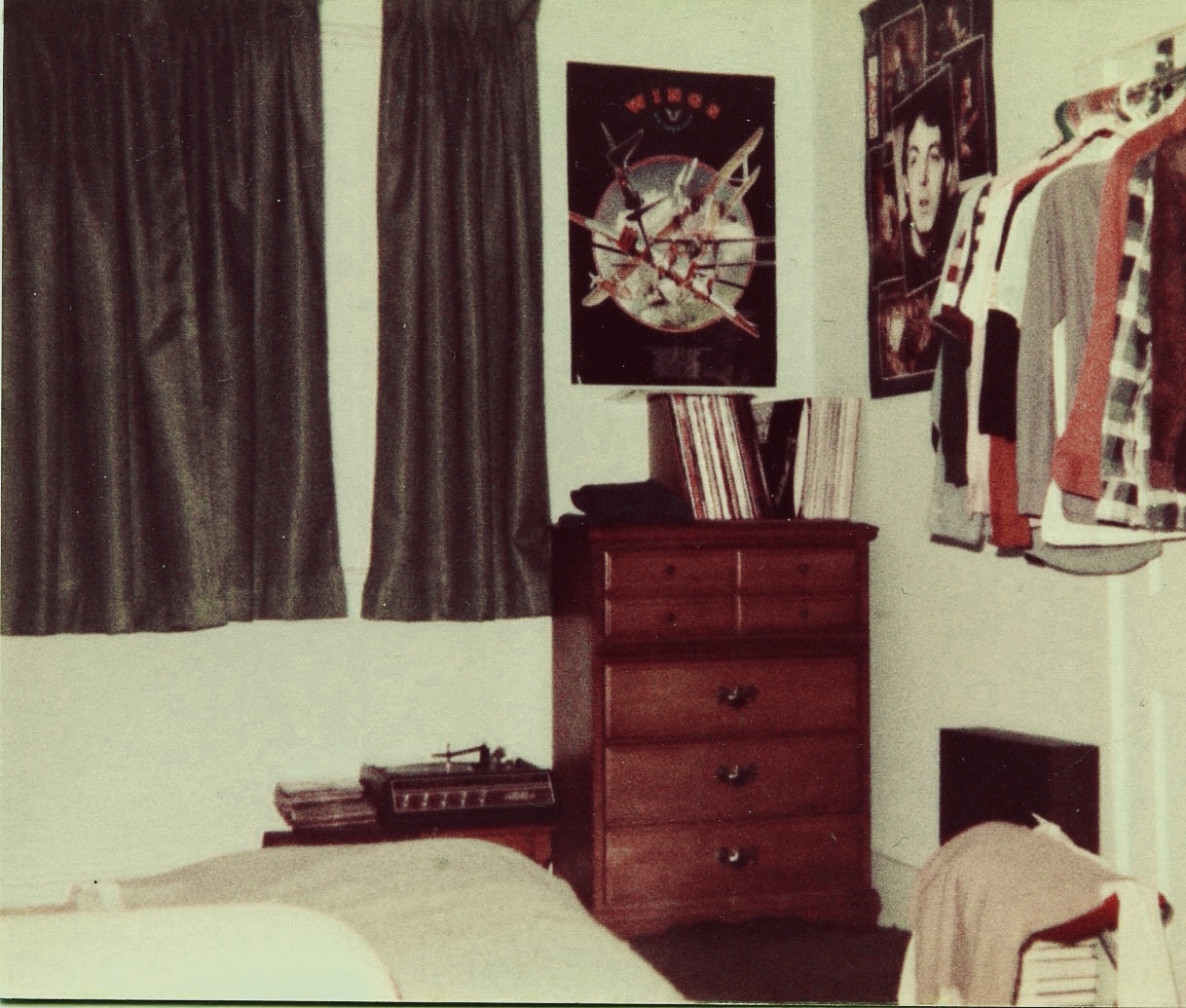 After five years of intense music fandom, in other words, my entire music library clocked in at a little less than 100 LPs, about 40 cassettes, and maybe – and I’m likely stretching it – 100 45s. I’d yet to complete my Beatles collection, though – as the posters demonstrate – I was a big Beatles/McCartney fan. I owned the red and blue best-of sets (Christmas gifts both), plus everything from Rubber Soul onward (sans the Hey Jude collection), but it wouldn’t be until late 1987, after graduating college and landing a full-time job, that I owned everything Fab.