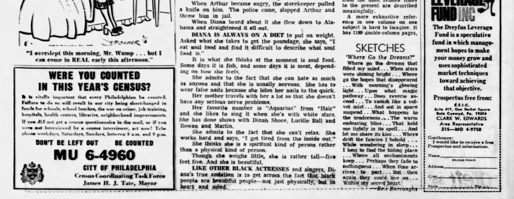 Of course, most everyone knows the basic outline of Diana’s story: Born in Detroit, her name was and is Diane everywhere but her birth certificate, where it was listed as “Diana” by mistake. At age 7, her father relocated the family to Alabama after her mother was felled by illness, but they returned to the Motor City in 1958, when she was 14. At that point, her dream was to become a fashion designer – but she was also flirting with music and soon joined the Primettes, whose other members included Florence Ballard and, in time, Mary Wilson.
