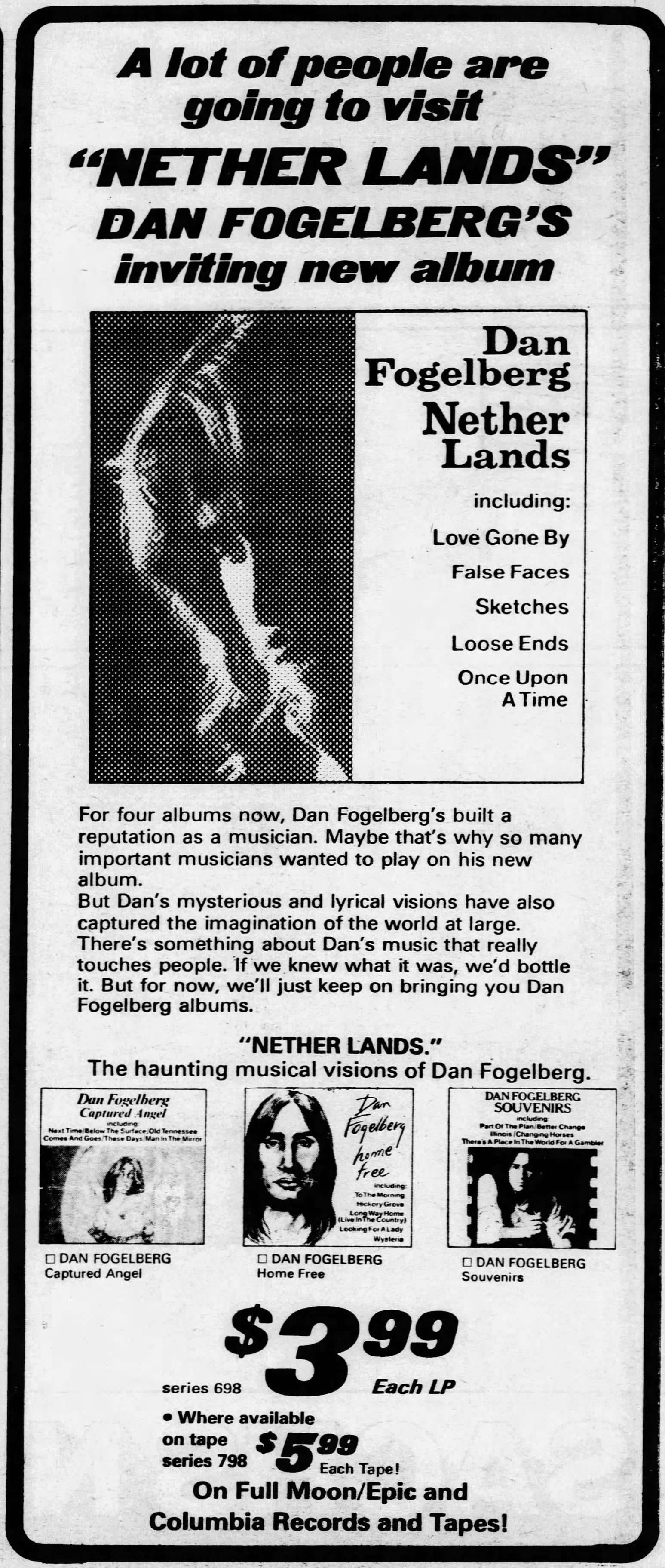 “It shows my search for the intricacies of the human psyche, something that is a lot tougher than writing and singing about love. I want bigger themes than love songs.” So said Dan Fogelberg to the Colorado Gazette Telegraph’s George Gladney in June 1978 when reflecting upon Nether Lands, which was released in May 1977.