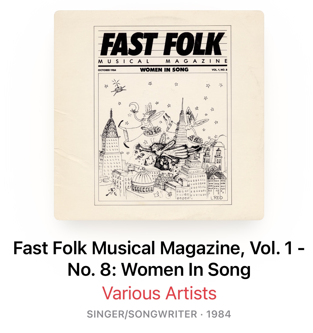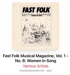 All of which leads to this: yesterday morning, I discovered that Apple Music houses the Fast Folk Musical Magazine compilation series within its catalog – not every entry, from the looks of it, but many. For those who’ve never heard of the sets, which I imagine is most, this Wikipedia entry provides the basics: Fast Folk released its first compilation in 1982 and its last in 1997, and featured hundreds of folk-flavored singer-songwriters in between; some were known within the folk community, others not. Tracy Chapman, Shawn Colvin, Lucy Kaplansky, John Gorka and Suzanne Vega, among others, appeared on the comps before releasing their debut LPs; others, I imagine, appeared while between labels (or, if not, with the permission of same).