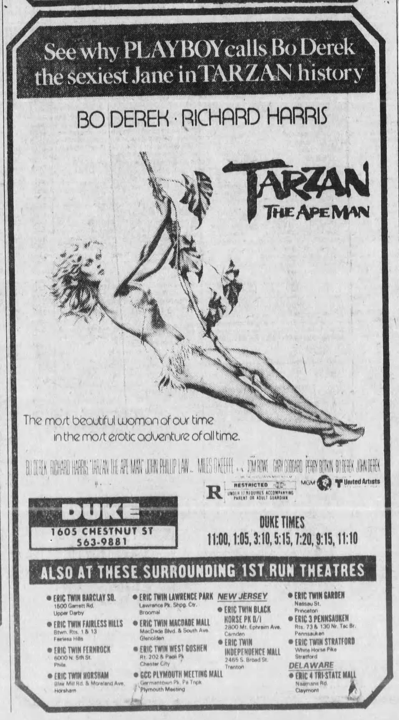 Although the above movie grid shows a slew of cool films to be seen, without access to a car – and, though we had our learner permits, we didn’t have wheels – our choices were limited to The Fox & the Hound at the Budco Hatboro and The Empire Strikes Back or Tarzan, the Ape Man at the Eric Twin Horsham. I can’t say for certain that this was the day I saw it, but at some point I did take in the Bo Derek film. While she may well have been, as the movie ad proclaimed, the “sexiest Jane in TARZAN history,” the movie was beyond awful.