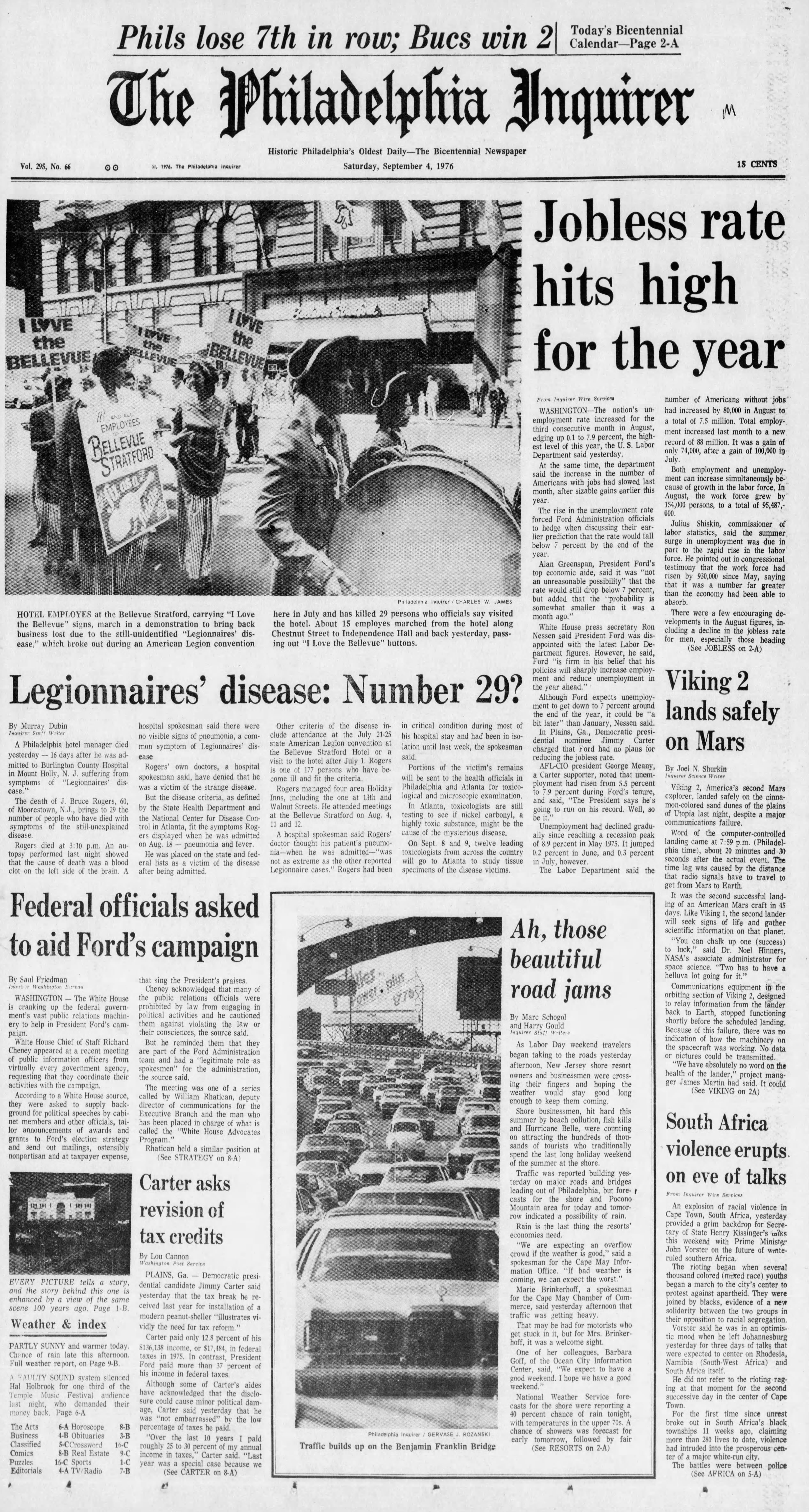 Forty-five years ago today as I write, Labor Day weekend had commenced in the United States – the last gasp for unfettered summer fun for most kids, as school started the following week. The front-page stories on the Daily Intelligencer, which served parts of Pennsylvania’s Bucks and Montgomery counties, were related to mostly that. The “Day of Reckoning,” aka the first day of school, was Wednesday throughout the Bux-Mont region – though a few were expected to be delayed due to teacher strikes.