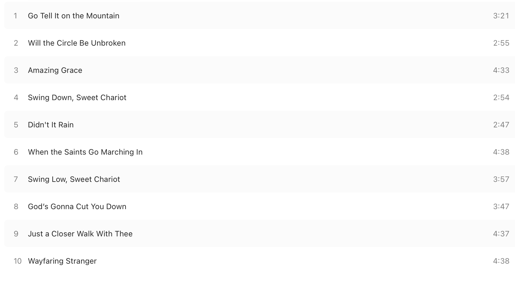 As the above clip demonstrates, the sparse arrangements add a dramatic element to the songs that’s often missing in renditions by other performers, who – to my ears, anyway – sometimes turn these treasures into little more than packaged representations of faith. Here, however, they become showcases not just for Lynne’s vocal prowess, but for the message the words convey. These are songs of toil and triumph, of sin and salvation, of not just finding a light in the darkness but of recognizing that said light exists.