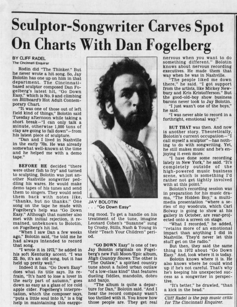 “Think of What You’ve Done” is yet another bluegrass-flavored track with exquisite harmonies from Skaggs; it finds Fogelberg coming to grips with a busted relationship—and sets the stage for the closing “The Higher You Climb,” in which he relates lessons he’s learned thus far in his life: “The higher you climb, the more that you see/The more that you see, the less that you know/The less that you know, the more that you yearn/The more that you yearn, the higher you climb.” Some folks may hear echoes of his ‘70s sides within it and, in fact, I agree; like “Go Down Easy,” it would’ve fit on any of his classic albums.