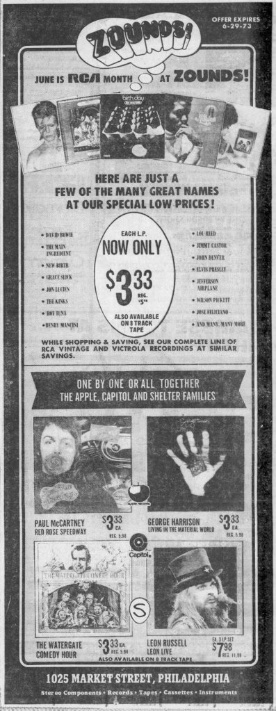In a similar vein, Mike Kalina of the Pittsburgh Post-Gazette opined: “The lyrics are shallow and the melodies (weak also) have to struggle to carry them. Even Paul’s vocals are below par. Is the former Beatle’s talent evaporating? He certainly seems caught up in the energy crisis.” David Bond of the Salem (Ore.) Capital Journal, meanwhile, channeled his inner Rex Reed: “After carefully playing both sides of Red Rose Speedway, set it aside and whip side one from the Beatles’ white album on your ears. There will be no doubt in your mind that 1) Paul McCartney is really ‘dead,’ or, 2) all he contributed to the Beatles was a pretty face.”