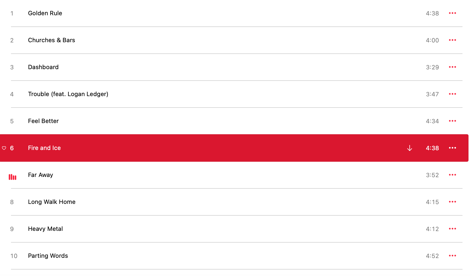 Some songs are about escape, however fleeting it may be. In “Golden Rule,” for example, she dreams of moving to Pensacola; and in “Dashboard,” she seeks comfort by driving out of town: “Put some John Prine on/Passed a couple graveyards and a rusty old boxcar/And I found an open sky to look upon.” In “Feel Better,” she prays that a perfect night will last longer than she knows it will. And “Heavy Metal” finds her seeking to drown out the memories of a past lover via hard rock. Other songs, such as the Logan Ledger duet “Trouble,” dwell on fraying and/or frayed relationships…