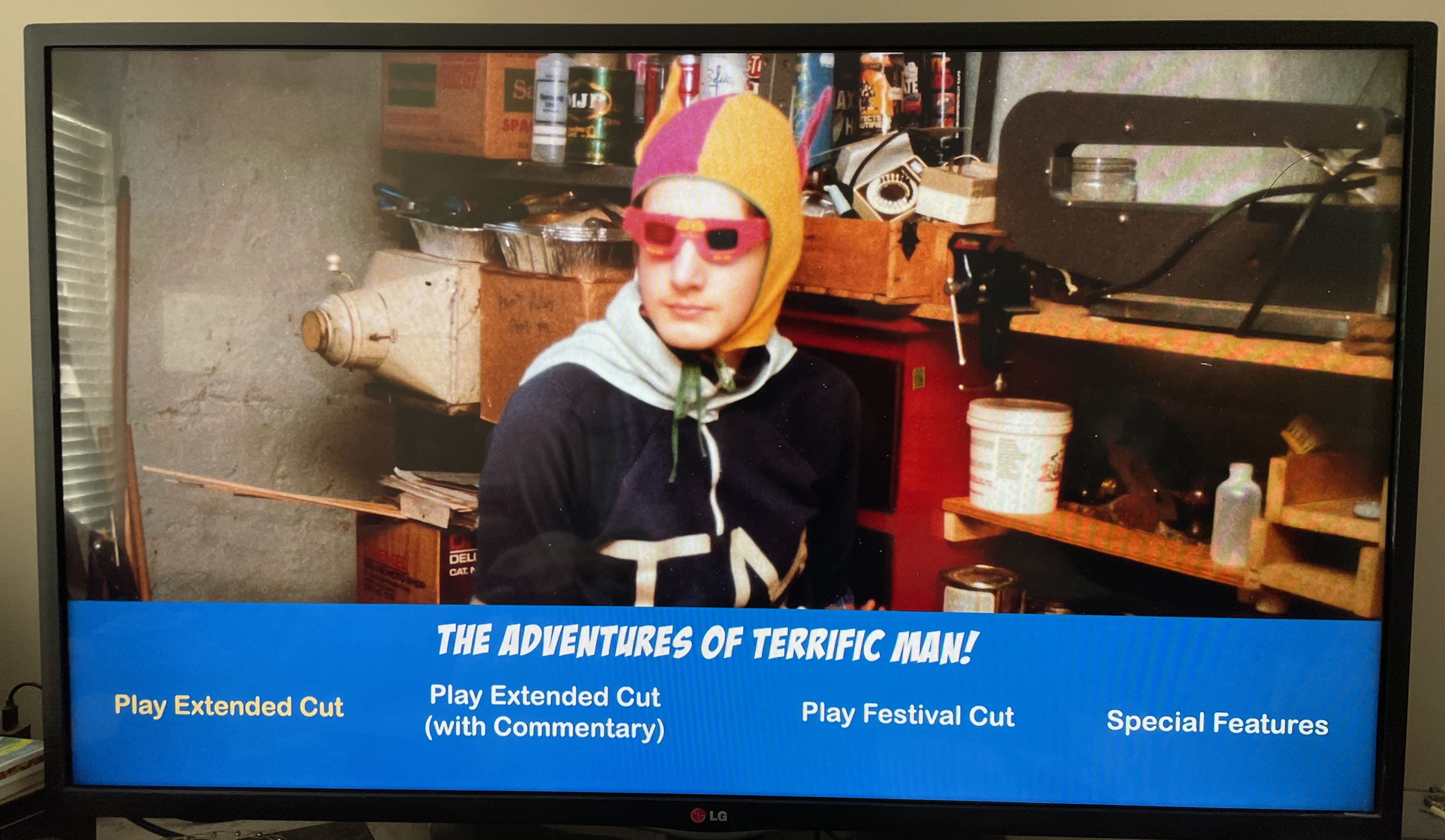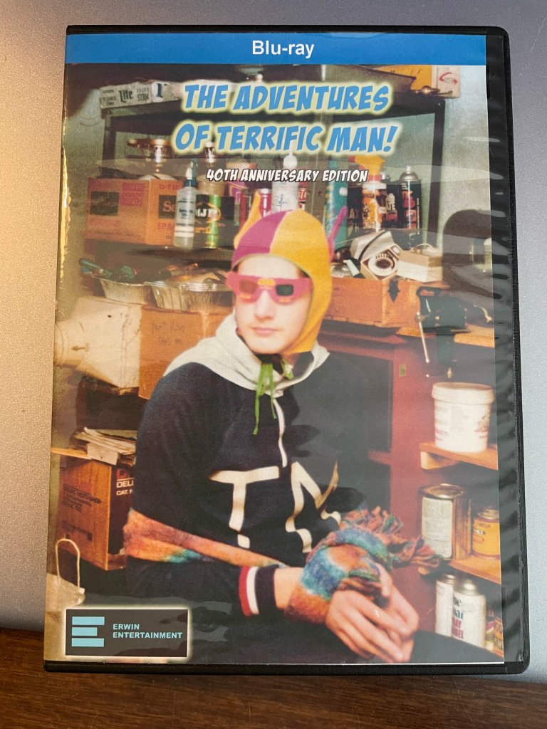 Todd claims that I cajoled him into making another Terrific Man™ installment. Though I have no memory of that, it rings true—I once had a silly film screened at a 9th grade assembly and, by 11th grade, had aspirations of one day writing the Great American Novel (not that I did), so likely was itching to do something along those lines. For the next good while, we collaborated on the screenplay during and outside of a shared study hall, whose proctor allowed us to pass our pages to one another. The intent, I should mention, was to create a parody of the superhero construct, somewhat along the lines of the old Batman TV series. At one point, and this didn’t make the final product, I wrote a choreographed fight set to a song that borrowed its melody from the “Old McDonald Had a Farm” song—“with a punch-punch here and a punch-punch there”; I envisioned it with Batman-like BAMs and POWs splattering overtop the scene. (The grandness of my idea was likely too expensive to implement.) I digress, of course, but the gist of everything is this: To 16-year-old us, our creation was laugh-out-loud funny.