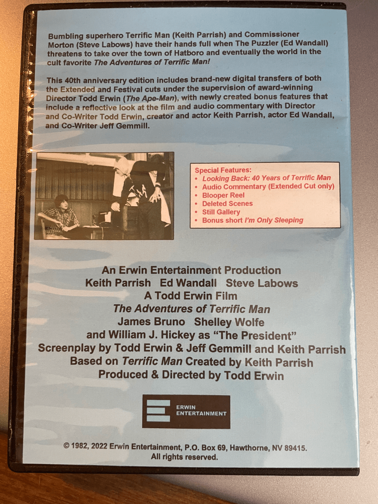 Flash forward to the present: After a painstaking process to transfer the film himself, Todd brought together myself, Keith and Ed for a round-robin remembrance of the shared experience and, too, to record a commentary track. While the film may not be great or even good, I still find it funny as all get-out—especially when Terrific Man™ rides his Terrific Bike™ through Hatboro. (It has to be seen to be believed.) It’s somewhat akin to an episode of The Goodies, a fanciful British comedy series from the 1970s and early ‘80s that aired on our local PBS station, just not as professional. (We were kids, after all.) I do wish, however, that Todd had included more of Hatboro-at-large, setting scenes with wide shots of York Road and the surrounding neighborhoods.
