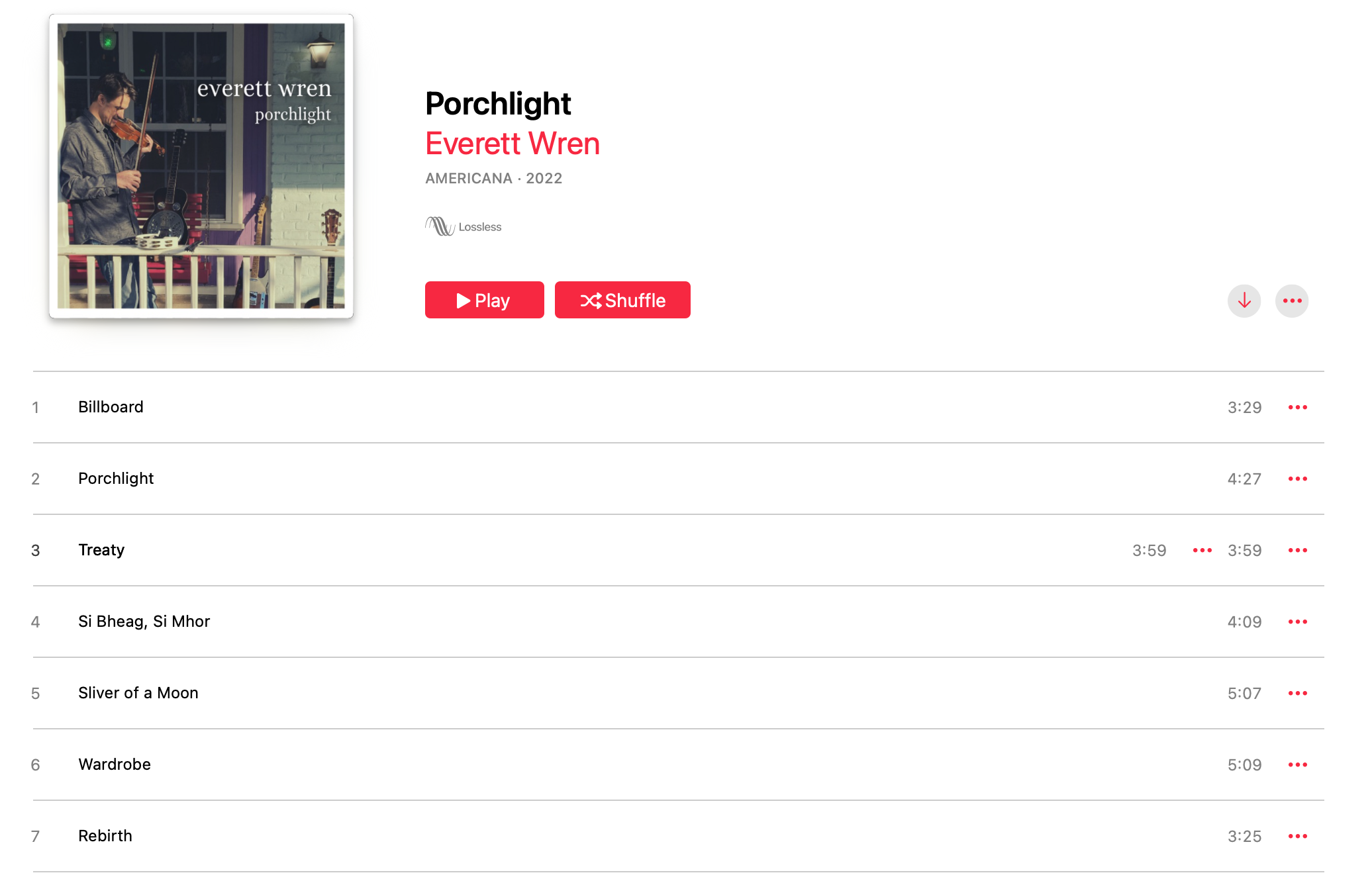 Porchlight, the solo debut from Everett Wren, is an old-school outing that’s accented by echoes of long ago. At times his vocals are plaintive and sure, weathered and worn, while his songs are rooted in—but not tied to—the music styles of yore, with his prowess on fiddle often taking centerstage. Yet it’s not all about plucked strings. On first listen, for instance, the blaring of a trumpet on “Sliver of a Moon” surprised me; it’s like a blast of New Orleans jazz into old-time goings on.