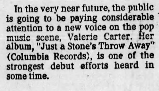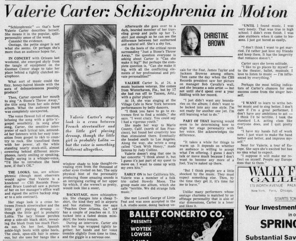 Also, here’s an intriguing profile of Valerie Carter from the pen of Christine Brown that appeared in the Miami Herald on April 7, 1977: