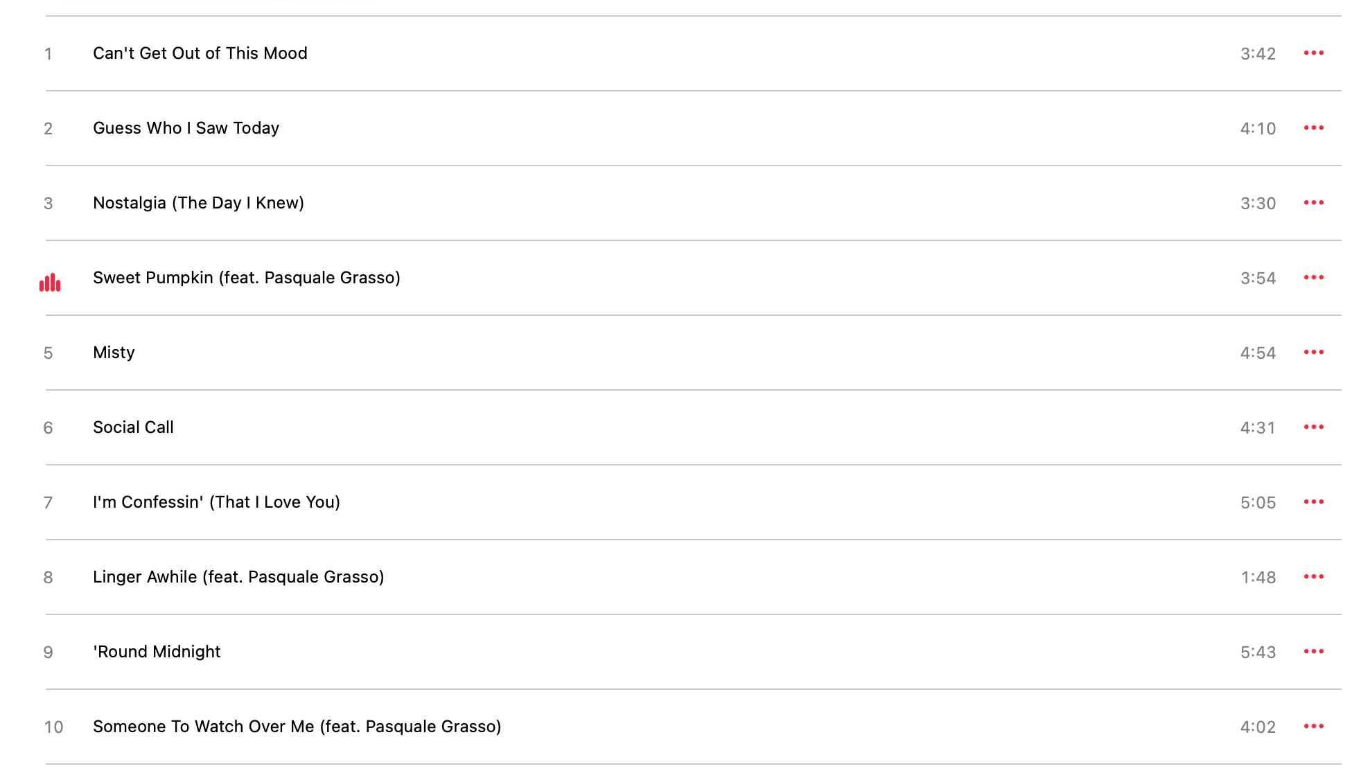 Throughout, Samara Joy is surrounded by a talented supporting cast, including guitarist Pasquale Grasso, drummer Kenny Washington, bassist David Wong and pianist Ben Paterson. One of the things I like most about the album, aside from the graceful jazz swing, is the space left between the notes. In today’s age, it sometimes seems that songs are created to placate short-attention spans—solos are truncated, instrumental passages shortened, etc. Here, however, chords linger like a fine mist in the air.