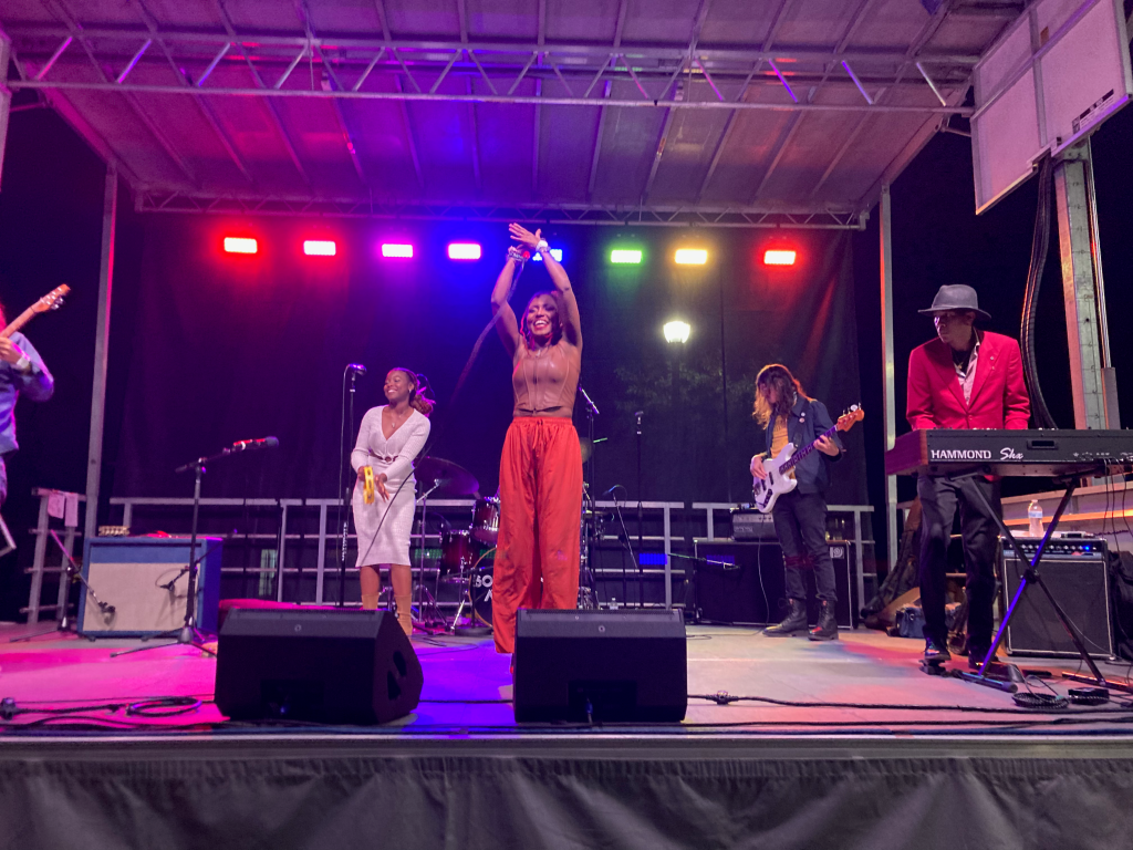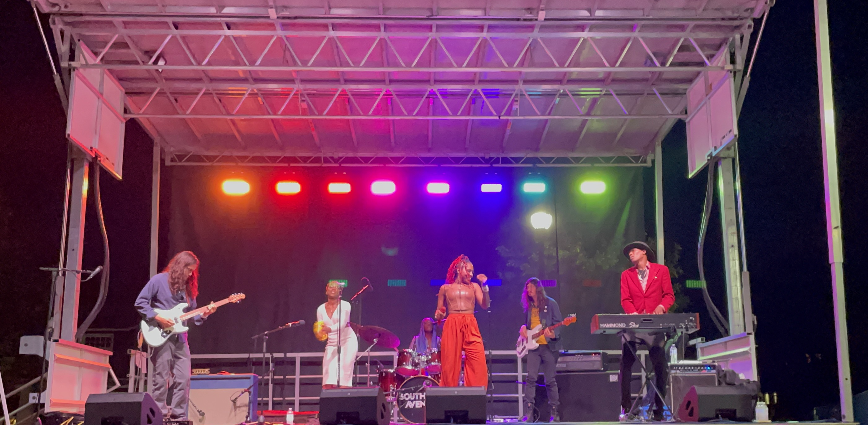 The crisp chill of autumn mattered not last night in downtown Cary, NC, as the Memphis-based R&B group Southern Avenue delivered a two-hour set of radiant joy that warmed everyone within earshot. Couples young and old danced and swayed at either side of the outside stage while little children frolicked at its foot, mimicking as best they could the hardest working woman in show biz, the band’s lead singer Tierinii Jackson. She reminded both of us of Tina Turner with her whirlwind moves; save for a handful of slower numbers, she was in perpetual motion.