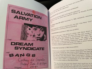 The four-CD set includes a bevy of additional tracks, as mentioned above. They may be a bit much for neophytes on first listen, no doubt, but longtime fans should enjoy them. The live tracks make me wish I’d seen them back in the day—though, in my defense, I would’ve been too young for the 21-and-over clubs in Philly. An in-depth history of the album from Thomas is also included; it features insights from Wynn, Smith and fellow travelers plus cool pictures and related ephemera, such as an old flier advertising a gig with the Salvation Army and the Bangs. Its main flaw, which is one shared by the otherwise stellar The Dream Syndicate: How Did We Find Ourselves Here? documentary: the absence of Precoda. He was an integral member of the band in those years, so his lack of participation is all the more noticeable. Perhaps he’s closed the book on that time in his life—if so, it’s a true shame.