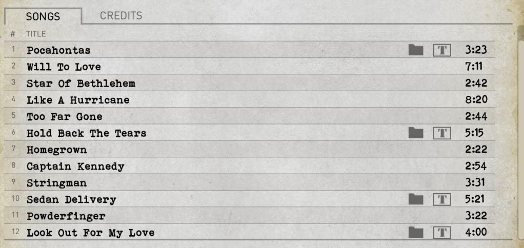 It wasn’t until late winter/early spring of ’77, in fact, that acetates of the new album were pressed. Side one consisted of the solo “Pocahontas” and “Will to Love,” with the latter finding him accompanied by a crackling fire; ”Star of Bethlehem” with Emmylou Harris on harmonies; “Like a Hurricane” with Crazy Horse; and “Too Far Gone,” which finds him accompanied by a mandolin-wielding Poncho Sampredo. Side two featured the acoustic “Hold Back the Tears”; a fresh recording with Crazy Horse of his ode to DIY dope,”Homegrown”; the folk ballad “Captain Kennedy”; the stirring “Stringman”; a less frenetic “Sedan Delivery” recorded with Crazy Horse during the Zuma sessions; an acoustic “Powderfinger”; and “Look Out for My Love,” also with Crazy Horse.
