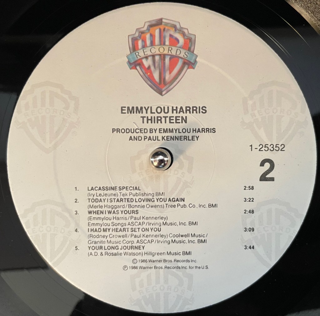 Although Thirteen cracked the Top 10 of Billboard’s country charts, it soon faded in memory—hastened, no doubt, by Emmylou’s next project, Trio with Dolly Parton and Linda Ronstadt. The technological leap to compact disc also played a role, I think. Even though CDs were a thing by the mid-‘80s, its release as a shiny platter took decades. New fans who discovered Emmy by way of Wrecking Ball and the Americana scene of the ‘90s simply didn’t have access to it. A true shame, that.