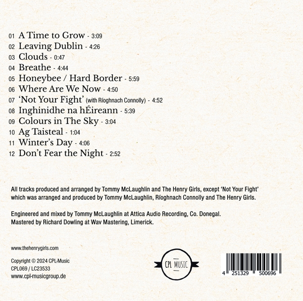 Interspersed amidst the old favorites: the latest Henry Girls album, A Time to Grow, which was produced by Tommy McLaughlin at Attica Audio in County Donegal. Sisters Karen, Lorna and Joleen McLaughlin—who named their group after their grandfather—have crafted a heartfelt collection that encompasses traditional Irish folk, soulful confessions and even old-school pop, with the songs accented by their DNA-enriched harmonies. (I’d call them the Irish Staves but they predate the sisters Staveley-Taylor by almost a decade.)