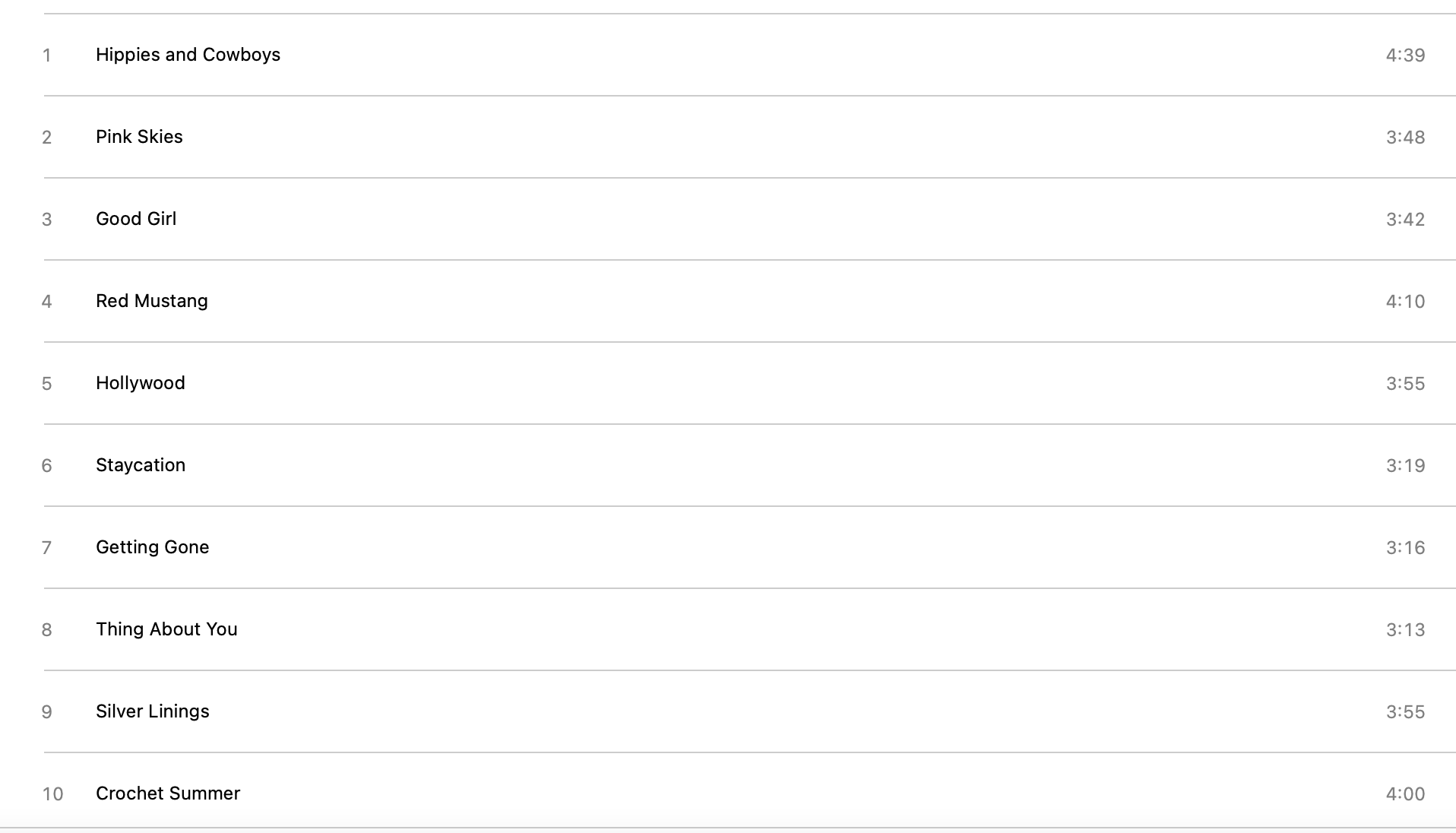 “Good Girl” finds her contemplating letting loose for a night, while “Red Mustang” revs its engine during a nostalgic drive to Malibu. It’s a sweeping tune that’s accented by a glistening guitars and a glimmering joie de vivre.