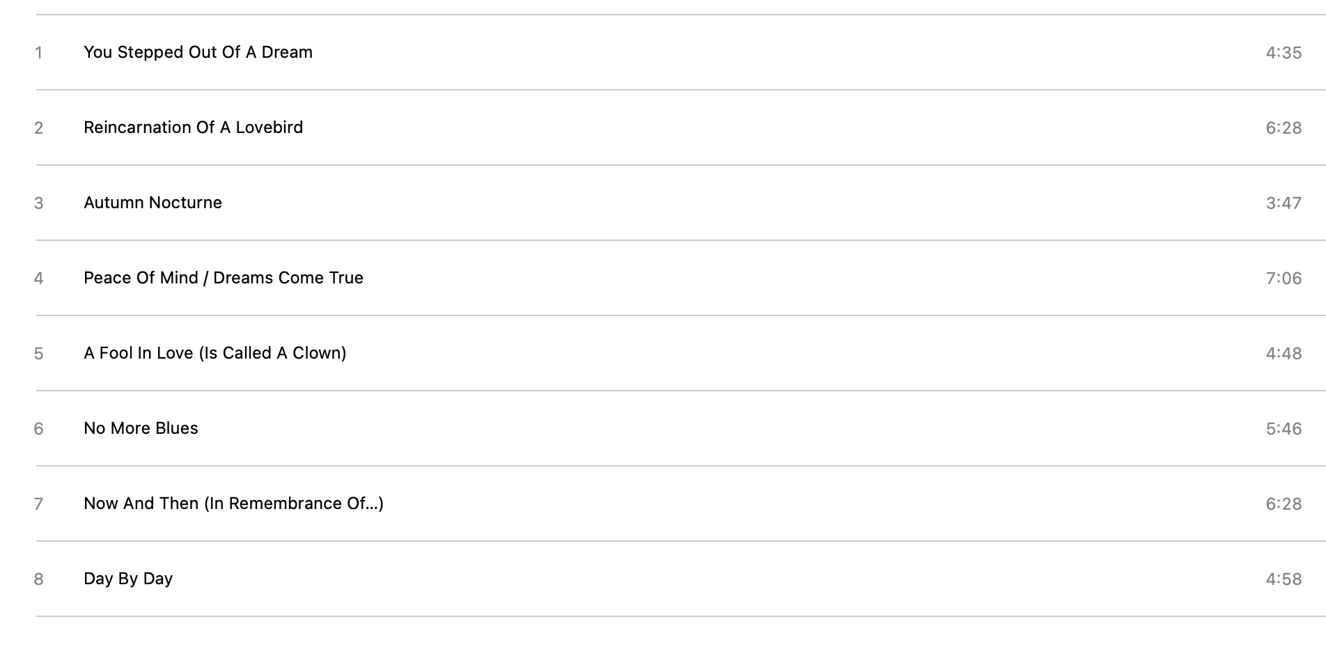 The album opens with “You Stepped Out of a Dream,” first sung by my late mother-in-law’s favorite singer, Tony Martin, in the 1941 musical Ziegfeld Girl. “Reincarnation of a Lovebird,” which follows, opens with Joy alone at the microphone; while the melody belongs to Mingus, the lyrics are hers—she crafted them to accompany the music. To say that it’s spellbinding is an understatement.