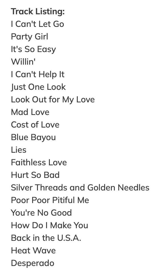 As I noted at the time, the editing turned the initial 12-track version into a live best-of. It was, to quote myself again, “an impeccable representation of a singer at the peak of her powers.” It’s still that, of course, but now packs twice the punch. The “deluxe edition” mixes and matches Ronstadt’s classic hits, such as “You’re No Good,” “It’s So Easy” and “Blue Bayou,” with such radio staples as “Faithless Love” and “Willin’.” It also contains choice cuts from her then-recent Mad Love album, including “Look Out for My Love,” the title track and “How Do I Make You,” and features a rollicking rendition of the Knickerbockers’ “Lies,” which she’d record for her next album, Get Closer, in 1982.