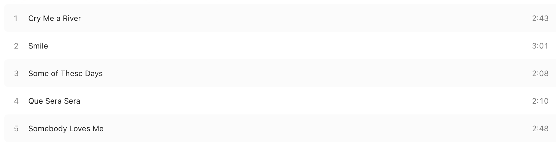 The track list:
