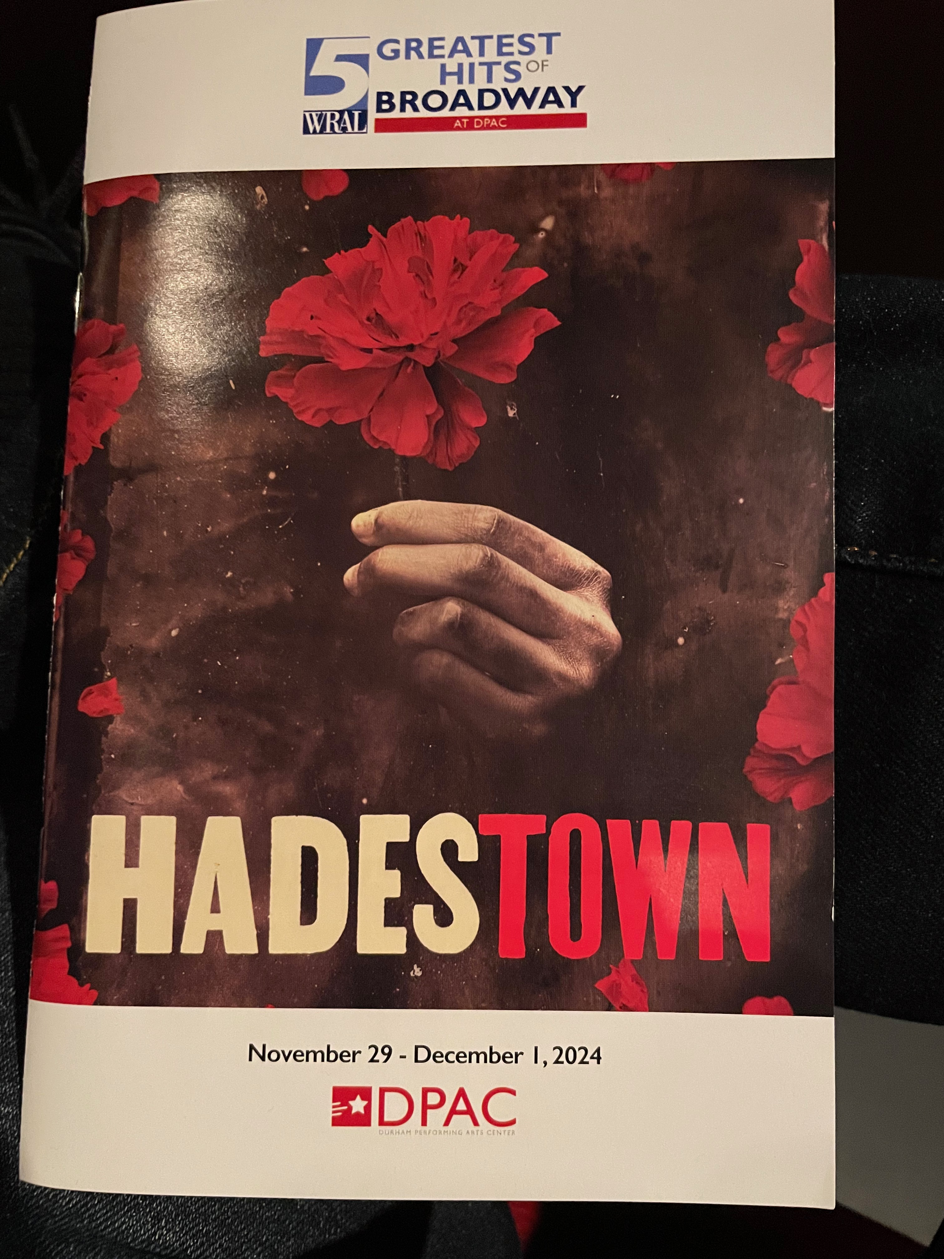But something tells me that the “play” and “fun” in the Daily Prompt question doesn’t mean clicking play on a playlist. Nor does driving into Durham to check out a restaurant that Diane, my wife, read about, which we did last night. But the day-long excursion we enjoyed last month, when we took in a matinee performance of the Tony Award-winning musical Hadestown at the Durham Performing Arts Center, probably does count. I am not a theater aficionado, nor well versed on the ancient Greek myth that drives the plot, but found it a fun way to spend an afternoon. (In some respects, and I’m sure the play’s fans will howl when they read this, I saw it as a mashup between the Buffy the Vampire Slayer episodes “Anne,” in which Buffy finds herself in a hellish dimension, and “Once More With Feeling,” a musical that features a dancing demon.) Making the day even better: Prior to the show, we enjoyed lunch with one set of friends and then, afterwards, had dinner with another set of friends.