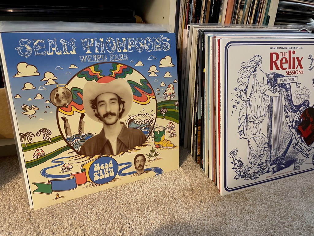 I walked into the Cat’s Cradle Back Room last April unaware of the Sean Thompson’s Weird Ears—the opening act—but, as I joked in my review of that night’s Mikaela Davis and Southern Star show, “Give a man a guitar solo and you make a man a fan.” Thompson and his rhythm section unleashed a sonic tsunami that night, reminding me of the fabled tie-dyed era that, as a teenager in the late 1970s and early ’80s, I’d longed to be a part of. “Somewhere back in time there’s a place I wanna go/But I know it’s just my ego,” he sings on “New Memories,” one of the stalwart songs on his new long player, Head in the Sand. He’s quoted as saying, “This album is a diary entry. A time capsule. A sonic outline of difficult experiences paired with musical growth.”