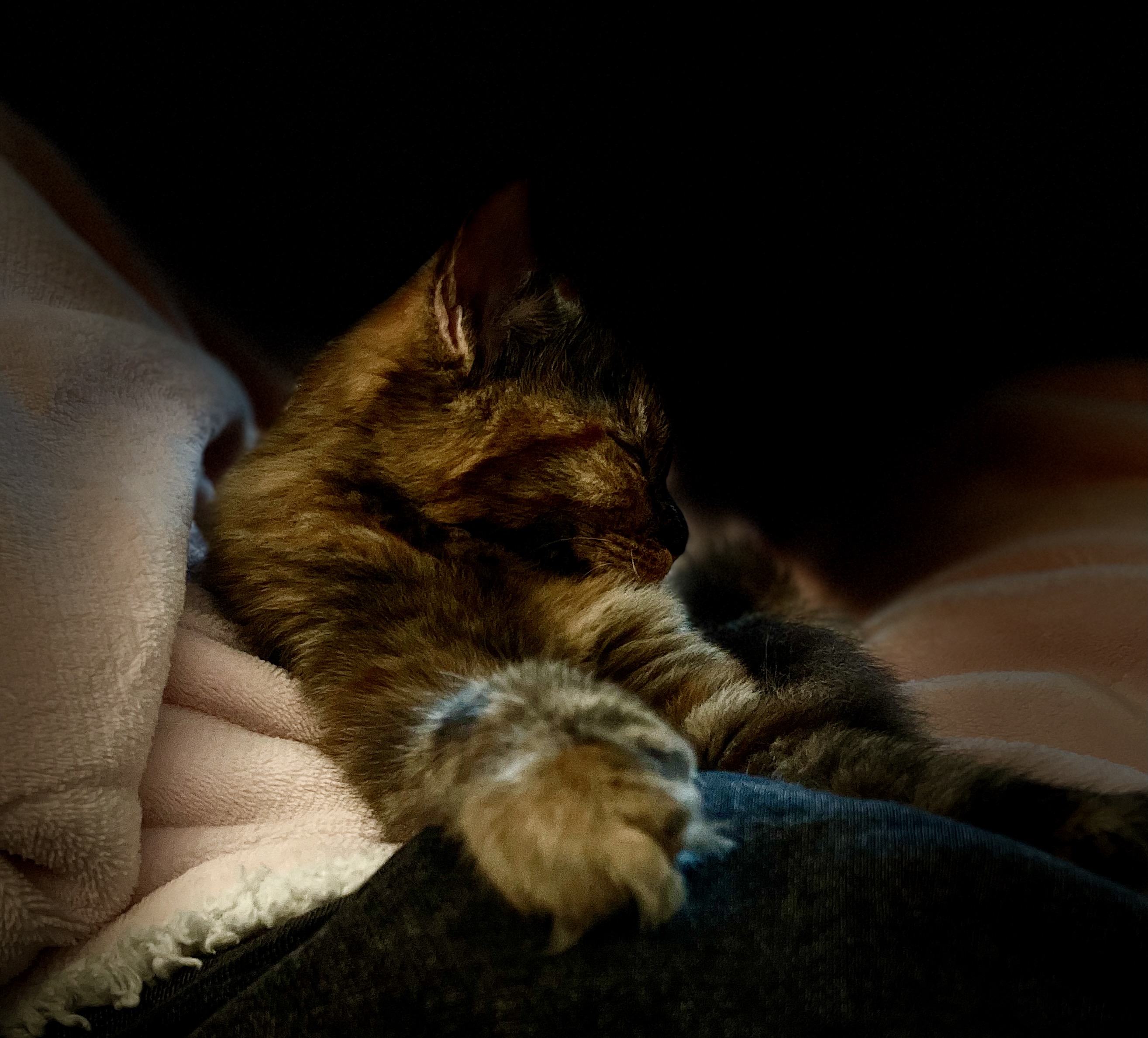 Congratulations! Tom Kraemer and his partner have taken on a kitten in the recent weeks as well…there are always some kittens that could use some invested apes. (Our two adult cats are enough, both adoptees in adulthood, and particularly since our younger one had some hard times before coming to us, and takes an unfortunately combative attitude with all other cats…our elder cat won both the fights we saw by the time we broke them up, but that doesn’t deter our less intelligent younger cat…elder cat is smarter and bigger, and now old enough to not want to put up that litter waste. So we segregate them, not too tough in this house, if annoying.