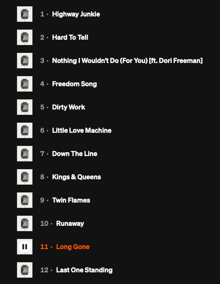 Highway Junkie, his solo debut, is the culmination of everything he’s learned through the years, including from his own missteps. “I gave up on music for a while, but it wasn’t until I gave up the drinking and the drugging that I realized I was still a junkie, just for the road and playing music,” he explains in a press release. “You have to make a change to see a change and this one spells that out.” The opening title track and closing “Last One Standing” serve as apt bookends to the album. In the former, he finds himself trying to outrun the shadow of his father (addiction is more than just a family tradition; it’s a genetic trait), while the latter delves into his decision to get sober. “I really was the last one standing, and if I didn’t make a change I was going to die or end up in jail,” he says. Both are powerful songs.